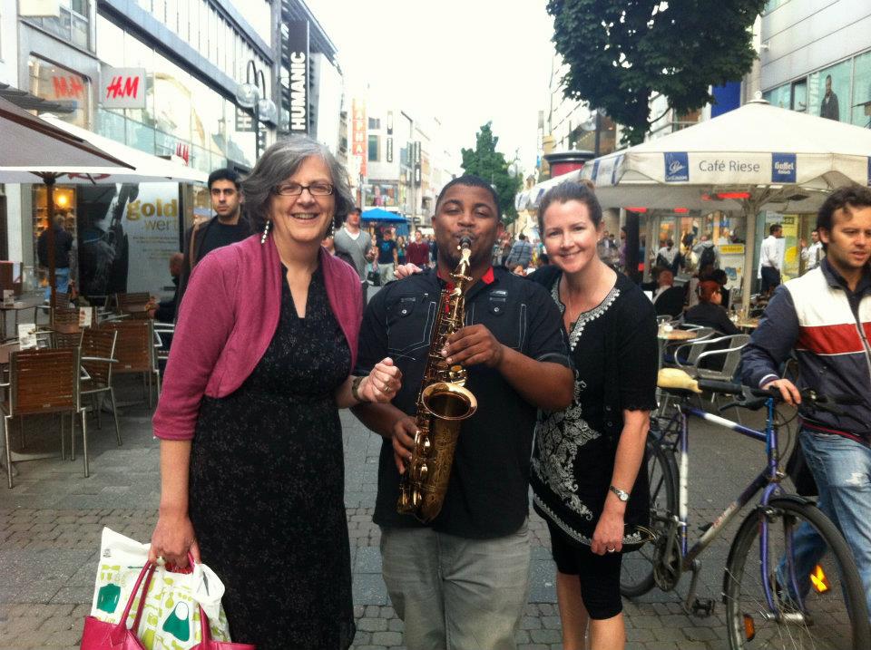 Another highlight was a chance meeting with Dayve Stewart Sax player who kindly serenaded Two Irish Laureates on the Cologne Street!
